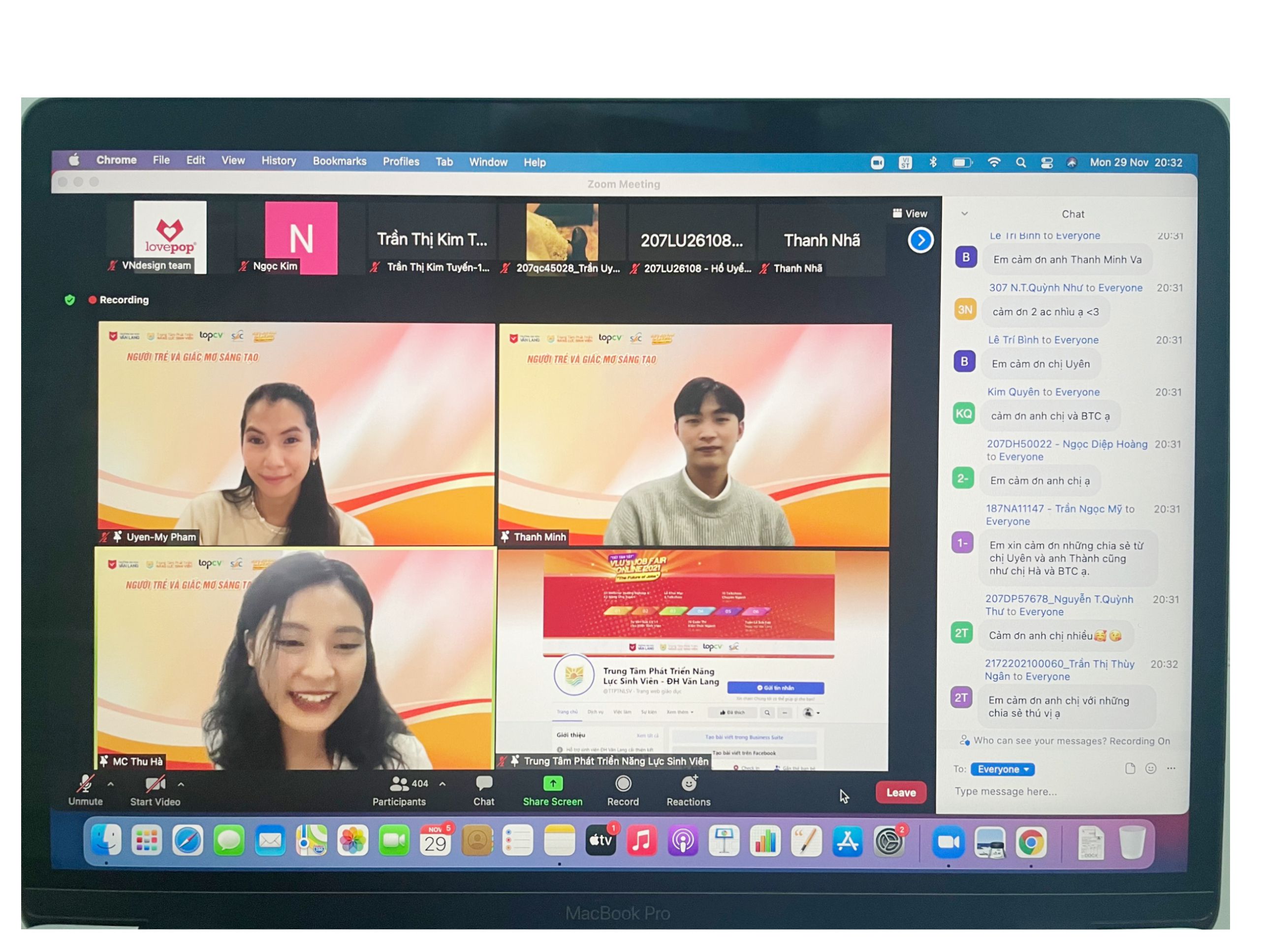 Ngày 29.11.2021, Đại diện Lovepop Việt Nam - chị Uyên My - giám đốc thiết kế cấp cao Lovepop Việt Nam đã đồng hành cùng trung tâm Phát triển Năng lực Sinh viên Trường Đại học Văn Lang và Công ty Cổ phần TopCV giao lưu với 400 sinh viên cho các nhóm ngành về Sáng tạo của trường đại học Văn lang.