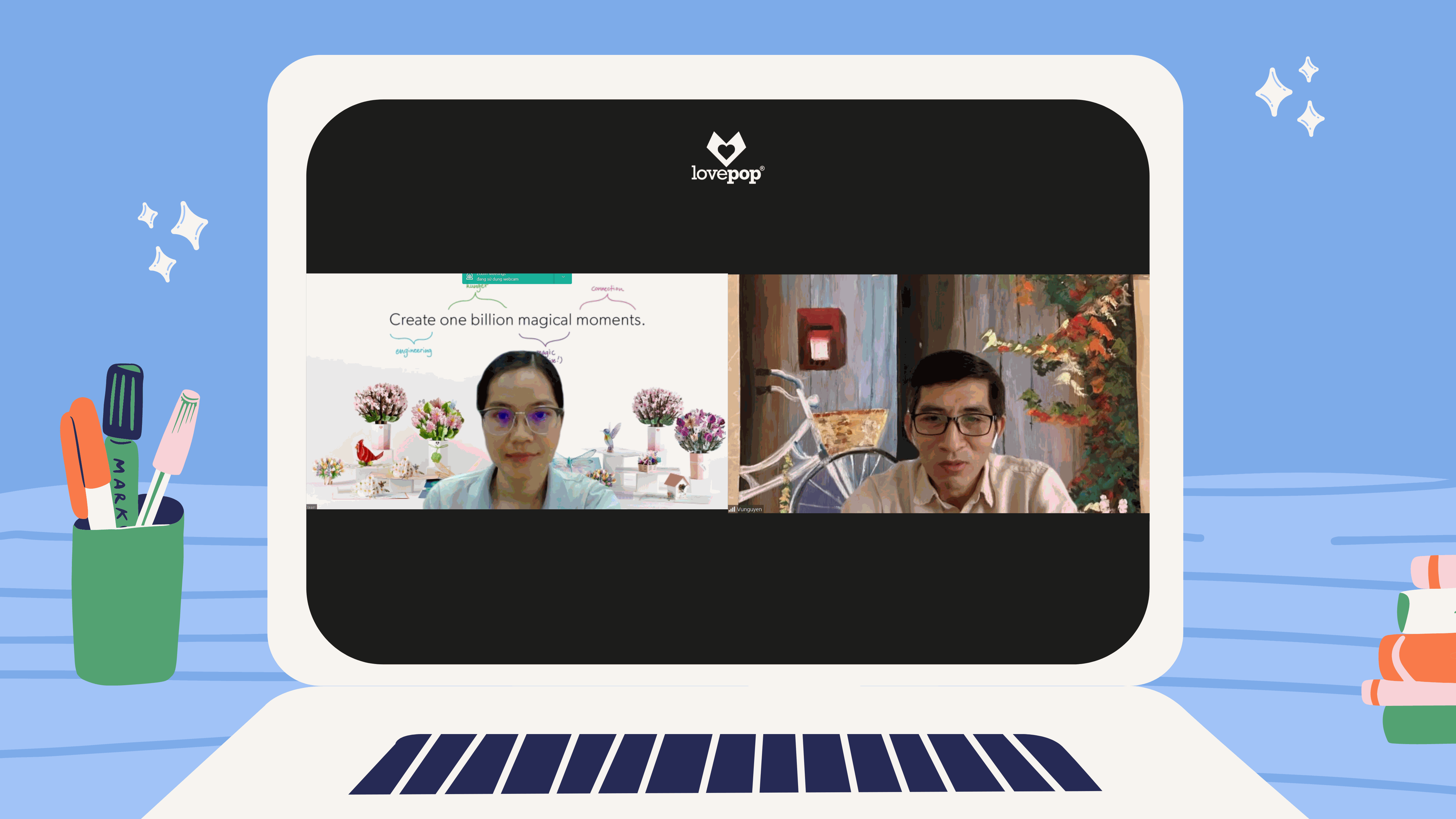 Sứ mệnh của Lovepop là “Tạo nên 1 tỷ khoảnh khắc kỳ diệu”, Lovepop muốn lan tỏa và tạo nên thật nhiều những khoảnh khắc kỳ diệu không chỉ cho khách hàng của mình mà còn cho tất cả mọi người xung quanh, đó là lý do Lovepop thường xuyên tham gia hỗ trợ vào các hoạt động cộng đồng và giáo dục. Nhận được lời mời tham gia buổi chia sẻ cho sinh viên đang học môn Small Business and Entrepreneuship tại trường đại học Greenwich, vào ngày 27.08.2021, anh Nguyễn Đăng Minh Vũ - phó tổng giám đốc công ty Lovepop Việt Nam đã có buổi Talkshow online chia sẻ cho các bạn sinh viên trường đại học Greenwich về câu chuyện khởi nghiệp của Lovepop.